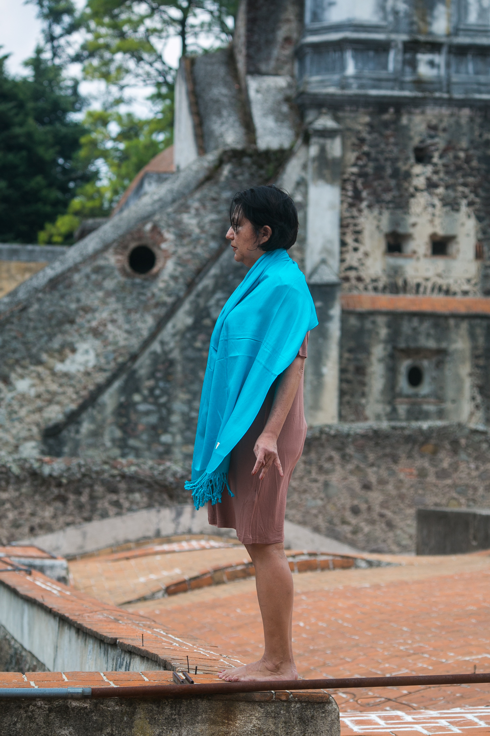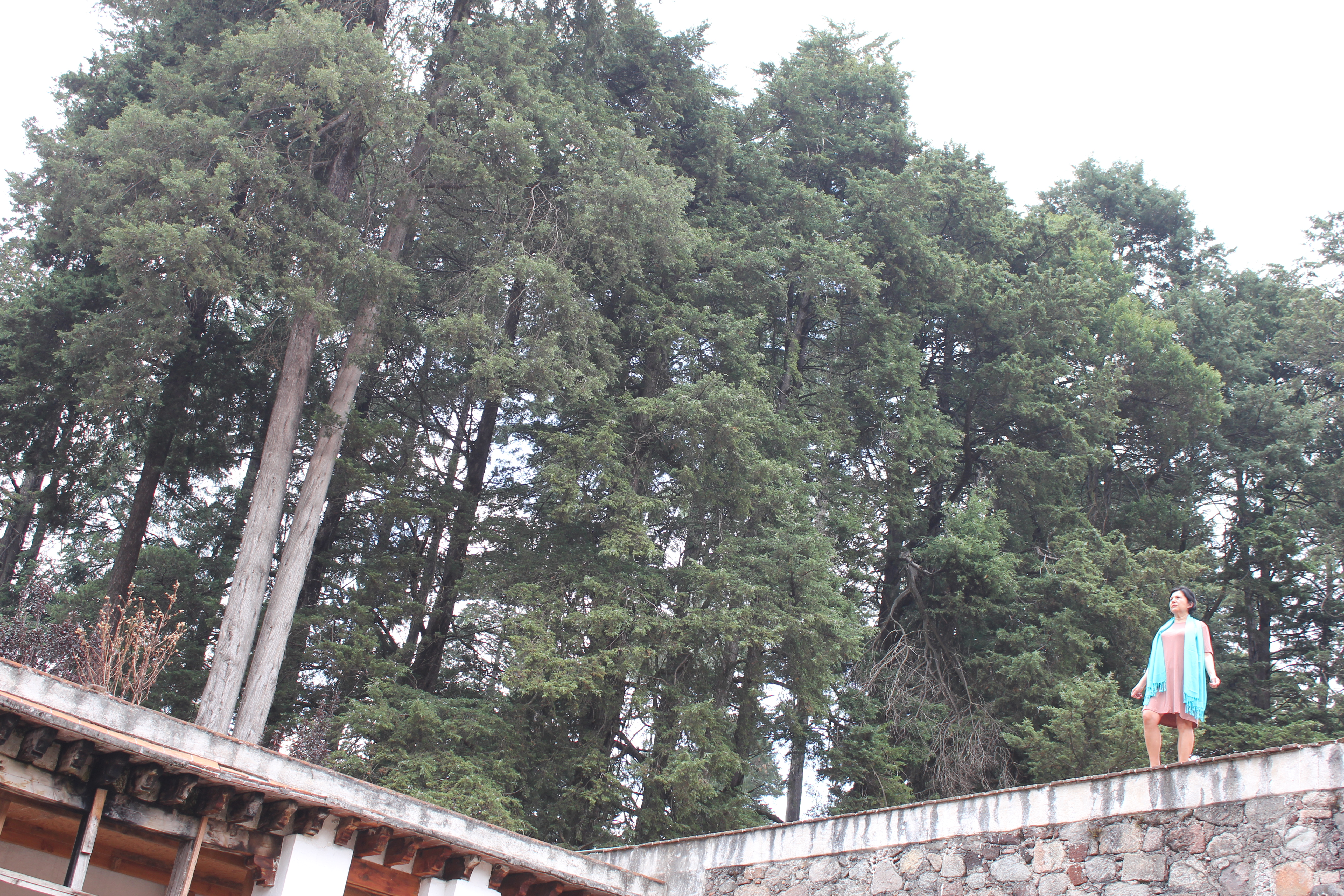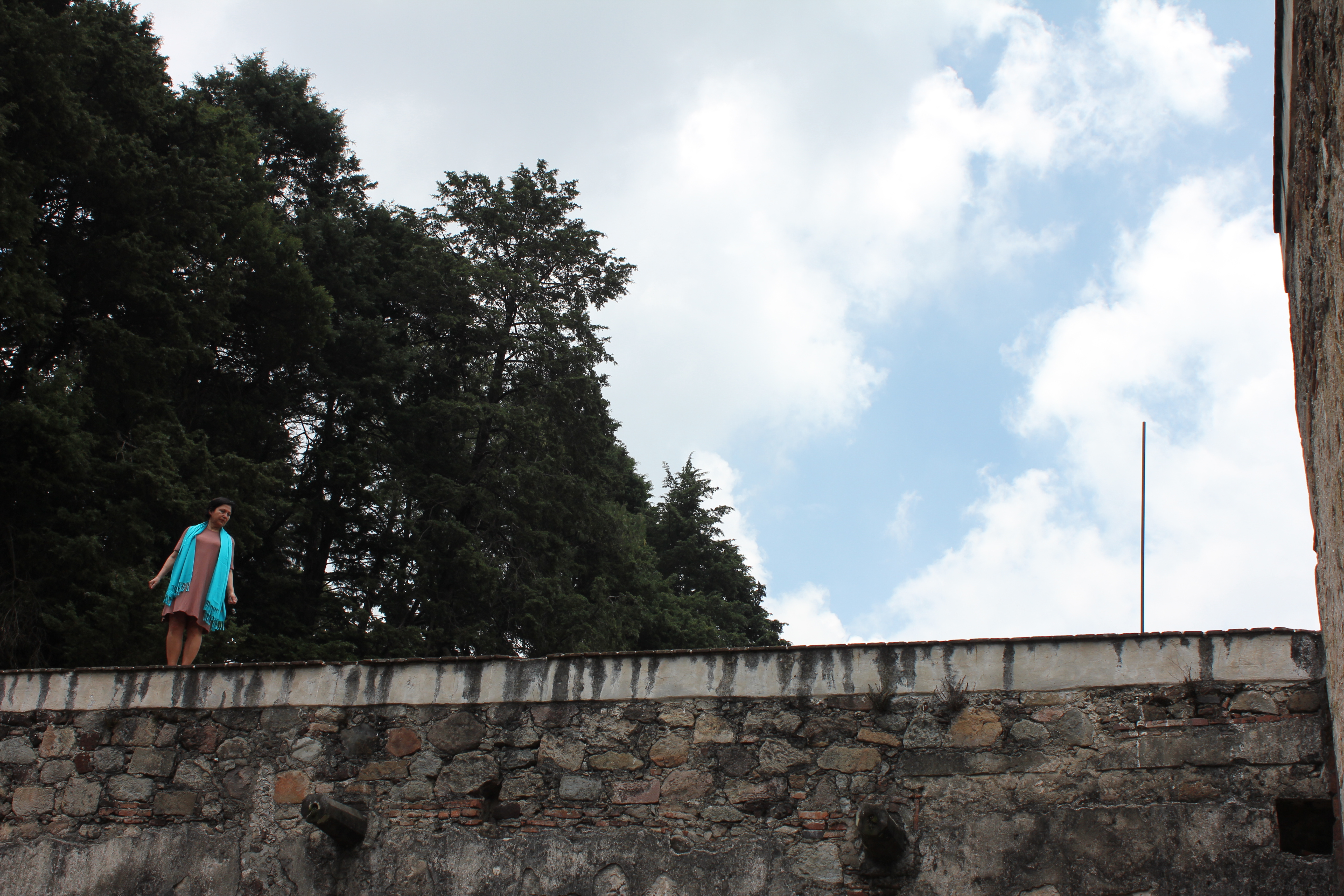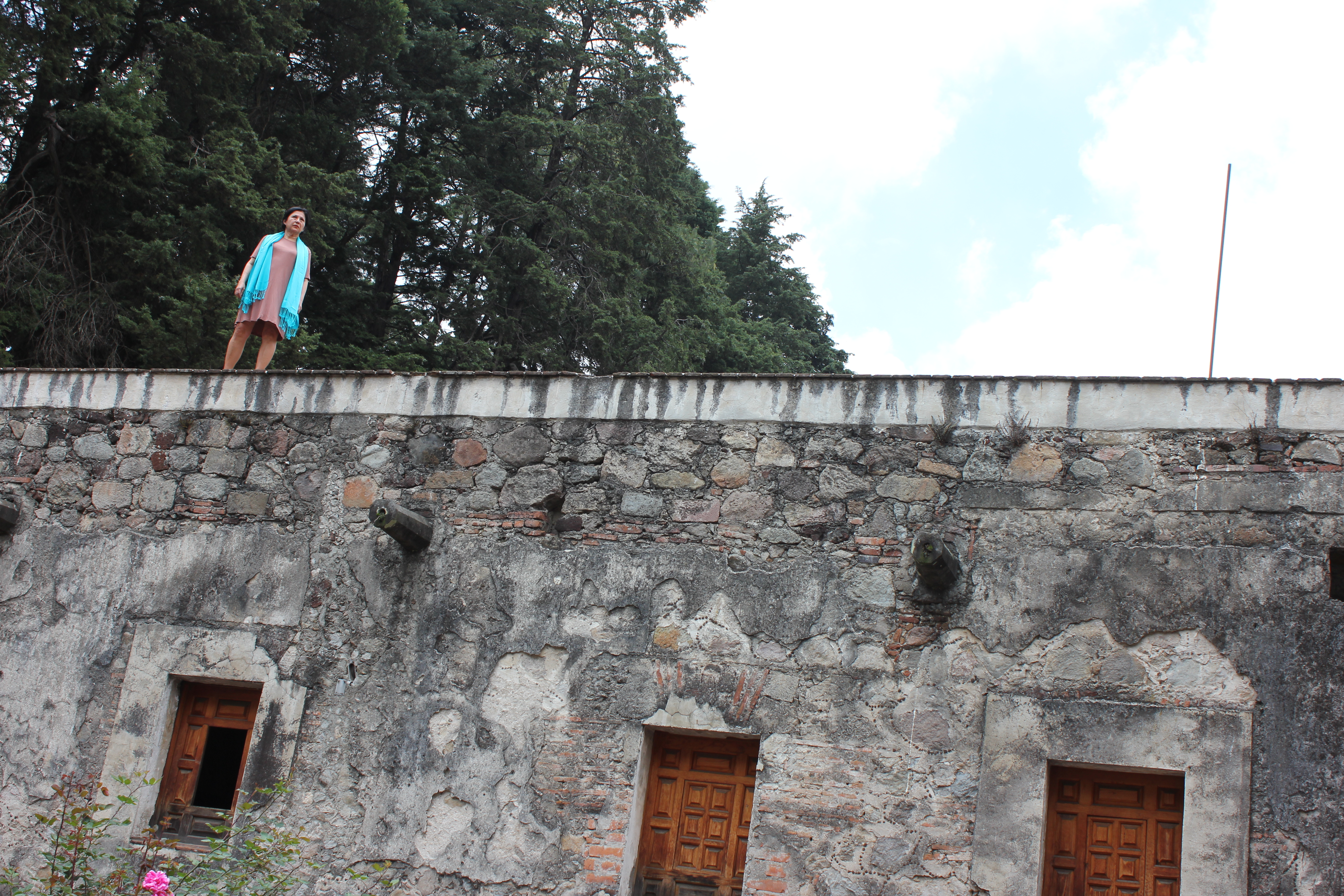 I walk barefoot on top and on the edge of one of the buildings of the old ex-convent built at the beginning of the 17th century, the first convent built in Mexico. It was declared as the first national park 1917.