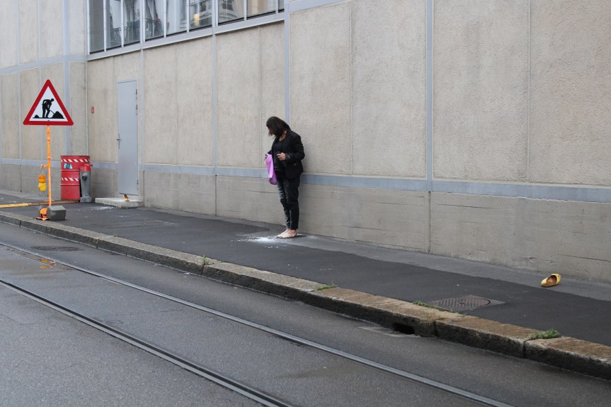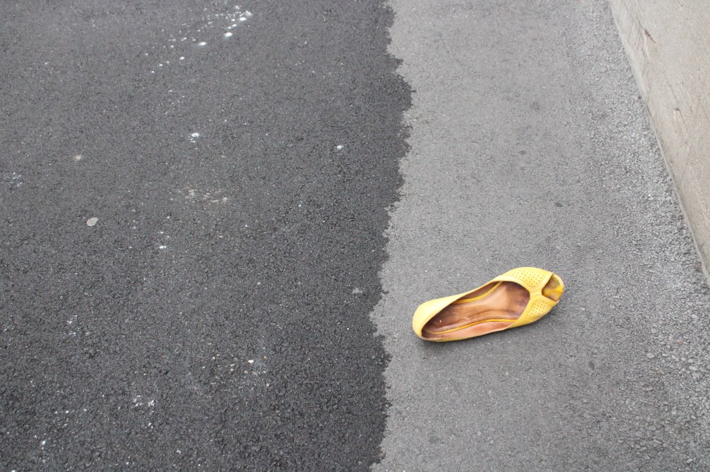 For two hours I walked along the two pavements where the marsie – collective art space – is located. As a first act, while walking, I left a pair of women’s shoes on both sides of the street.